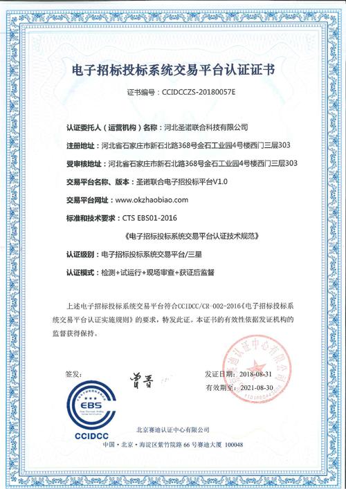 EBS認證分為三個等級:一星是基礎級,具備以線上方式完成招標投標全部過程的基本功能。二星是標準級,具備實現(xiàn)全流程無紙化在線招標投標的功能。三星是優(yōu)化級,在標準級基礎上具備其他相關優(yōu)化服務功能。三星作為檢測認證最高等級,在實現(xiàn)全流程無紙化在線招標投標功能的前提下,對平臺友好性、科學性甚至創(chuàng)新性提出了更高的要求,通過EBS三星認證表明圣諾