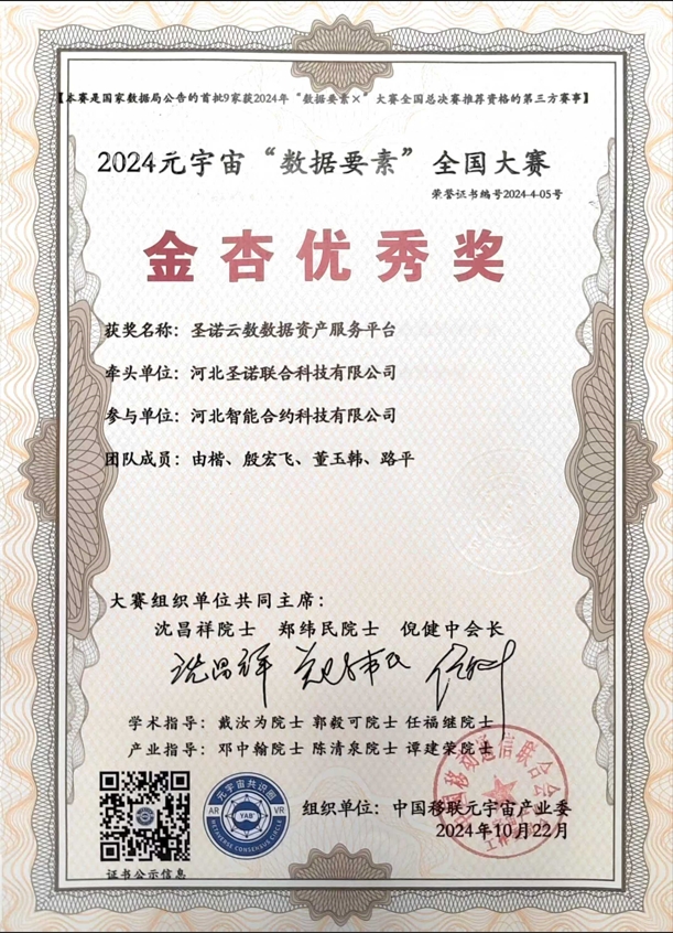 喜報|河北圣諾聯(lián)合獲2024元宇宙數(shù)據(jù)要素全國大賽“金杏優(yōu)秀獎”